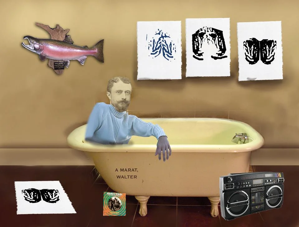 LaCheda started his artistic career involving himself with the materiality of calf-lard rendered bath soap but barely made a living given it’s poor archivability. Through this study he became concerned with the relationship of the human body to lukewarm water. In particular, he was interested in what this had to say about mankind’s greater purpose in the world. Seeking to preserve the ephemeral qualities of skin soaked in a bathtub LaCheda developed quite the unique process where he would soak for many hours while listening to Marky Mark and the Funky Bunch's “Good Vibrations” on repeat. He would then exit the bathtub, roll around in printers ink, and press his body on Arches Watercolor Paper (300lb Cold Press). The works created by this process were known as “Messages from the Maker”. LaCheda believed that these works were instructions from a spiritual plane intended to show him the way to save the world. LaCheda died at age 72.